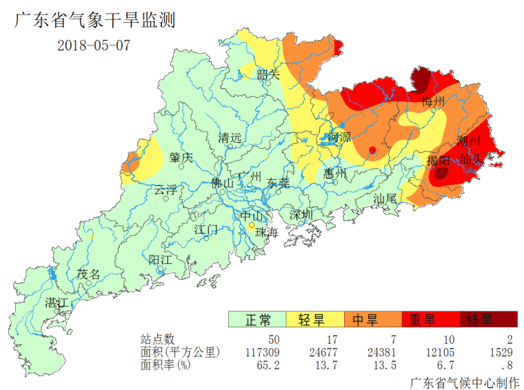 图3 5月7日广东省气象干旱分布图