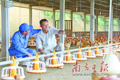 与温文选一样,退伍军人温丽坚和两位战友也选择了回家乡创业,2017年,3人共同出资30多万元投入了榄根大坪顶养殖示范小区项目,与温氏股份共同合作养鸡,至今已经上市两批鸡,一批毛利3.5元/只,一批4.2元/只,一共上市了8万只,“跟温氏合作降低很多风险,自己喂好鸡就可以了,等着上市。”温丽坚说。