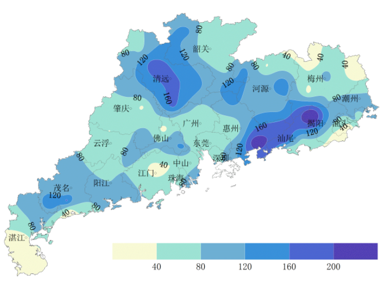 预计,8日受中等偏弱冷空气影响,梅州、南部沿海地区、珠三角中南部地区有中到大雨局部暴雨,其余地区多云到阴天有阵雨;9日,南部沿海和珠三角南部地区多云间阴天有中雨局部大雨,韶关和清远阵雨转多云,其余地区多云有分散阵雨;10~11日,受南海北部热带扰动影响,南部地区多云间阴天,有(雷)阵雨,其余地区多云,有分散(雷)阵雨。12~14日,受南海热带扰动环流、副高边缘东南气流影响,我省南部地区有一次中到大雨局部暴雨降水过程,中部地区有(雷)阵雨局部大雨,北部地区有分散阵雨。