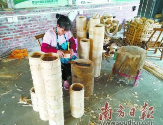 罗定市恒兆蒸笼有限公司工人在手工制作罗竹蒸笼。谢庆裕 摄