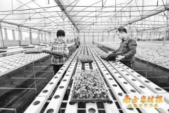 三水白泥镇的农户正在蔬菜大棚内打理无土栽培蔬菜。 全智敏 摄