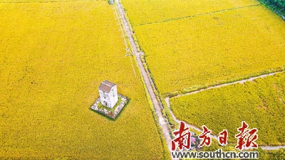 中山市大涌镇起凤环村稻田丰收美景。通讯员供图