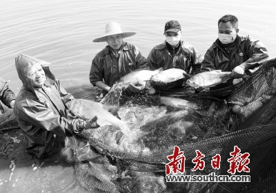 博览会上,渔民现场展示捕捞的四大家鱼。记者 肖雄 摄