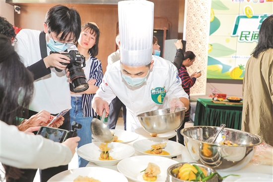 菠萝手撕鸡、凤梨大鳝球、酥炸春卷花配菠萝汁、一菠三味……4月10日下午,由扎金花app 主办的“广东菠萝民间厨王擂台赛”总决赛在广东省乡村振兴文化服务产业园举行,9位来自民间的烹饪高手大展厨技,展开了精彩比拼。这是2021广东菠萝“12221”品牌推广营销行动系列活动之一,将“粤菜师傅”文化与广东特色农产品相结合,进一步擦亮“粤字号”农产品的金色招牌。