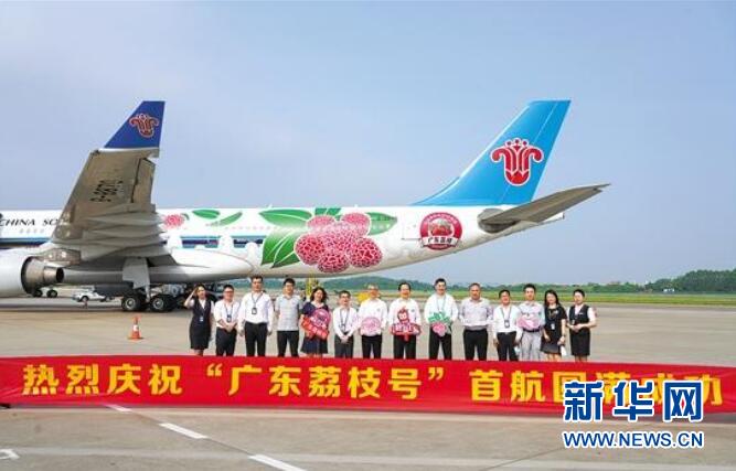 2020年5月20日,世界首架荔枝主题飞机“广东荔枝号”成功首航。新华网发 宋金峪 摄