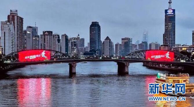 2020年“520致敬平凡英雄,就用荔枝表达爱”活动,荔枝亮灯广州海珠桥。新华网发