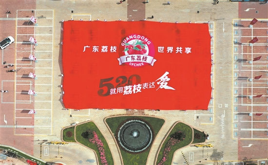 5月20日上午,“用广东荔枝表达爱,邂逅尝鲜”活动在广州流花中心启动,52辆滴滴“荔枝号”定制车摆出了“520”的字样。发车仪式上,鸣笛声一落,司机徐徐拉开活动主题红旗,全场一起高喊“520,就用广东荔枝表达爱!”