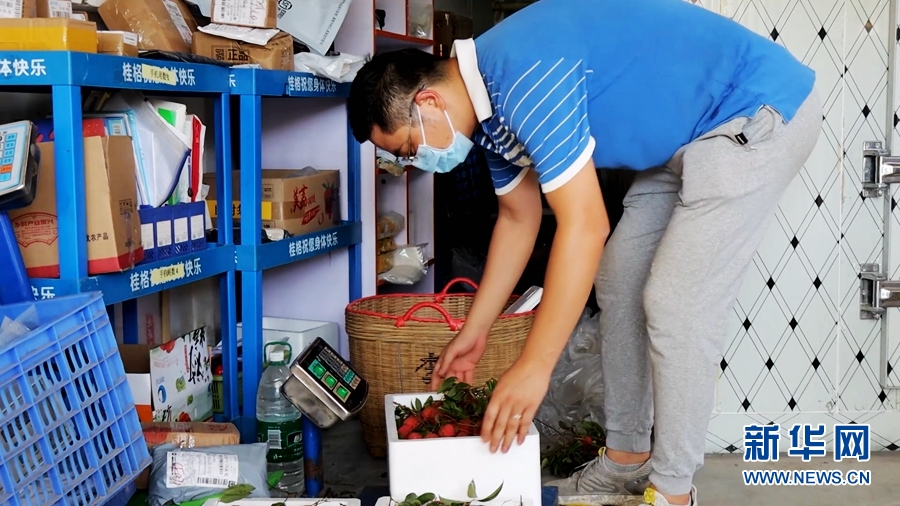 村里的合作社正给荔枝打包,准备运往客户的手中。新华网发(罗素玲摄)