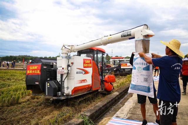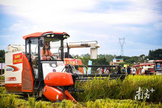 比赛当天,来自广州水稻主产区农机社会化服务组织的10名机手在田间地头同台比武,考验选手们的不仅仅是速度,还有收割作业过程中的操作熟练程度、作业效率、损失率、割茬高度、有无漏收等作业情况。