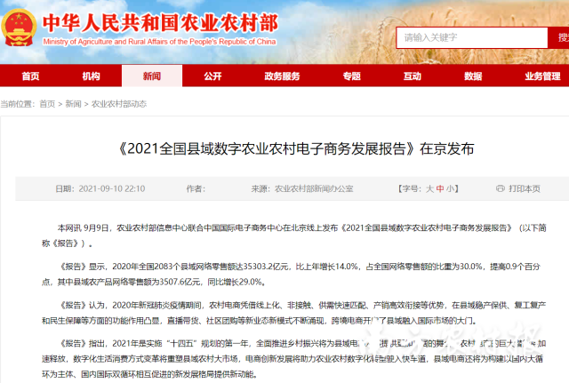 《2021全国县域数字农业农村电子商务发展报告》在京发布。