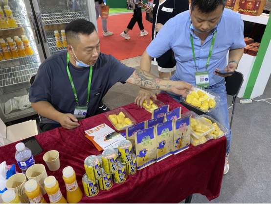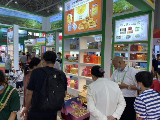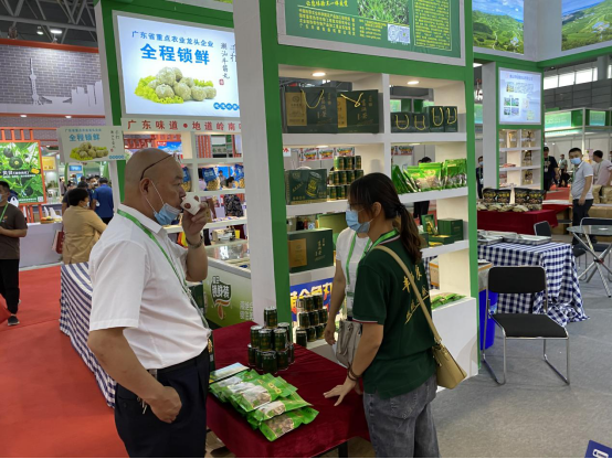 广东地处祖国大陆最南端,光热资源丰富,地域特色农产品众多。近年来,随着广东全面实施乡村振兴战略,一大批特色产品资源得到深入开发。广东展位各展台上,农产品种类丰富、极具特色,潮汕牛筋丸、桂圆干、香辣鸽、化橘红片、金柚月饼、丰硒良姜饮品、热带水果汁等产品人气爆棚,商务对接、品尝体验"粤"牌农产品的人络绎不绝。