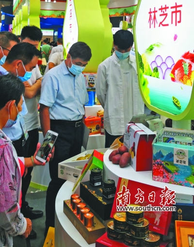 在食博会广东专区,一个专属于西藏林芝市的农产品展区引人注目,展位上陈设着苹果、猕猴桃、牦牛肉以及松茸、天麻和白肉灵芝等特产,它们有一个共同的品牌——“林芝源”。据林芝农业农村局相关负责人介绍,“林芝源”是广东第九批援藏工作队为消费援藏设立的“7+2”消费援藏平台,上架了40余家林芝本土企业的商品,援藏工作队希望通过品牌效应,把西藏林芝的优质特色产品销往大湾区。