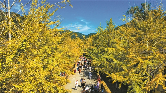 11月中旬,韶关南雄帽子峰景区银杏进入最佳观赏期(图片来源:韶关市乡村振兴局)