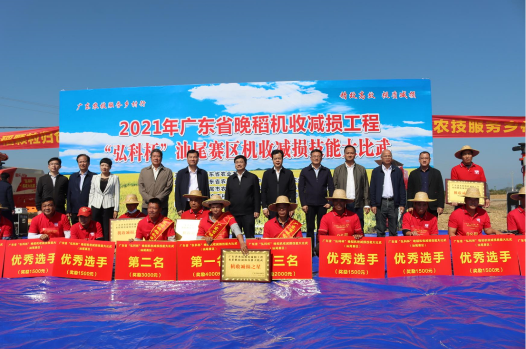 “弘科杯”汕尾赛区机收减损技能大比武是2021年广东省开展的省市联动水稻机收减损技能比赛的收官之战,据统计,截至目前,省市,联动机收减损大比武共举办8场,遍及全省各粮食主产市,有力带动了各地开展各种形式机收减损活动。其中,在云浮市举办的首场大比武活动采取线下现场观摩、线上直播观看形式,累计超百万人次观看,掀起了“减损就是增产”的比学赶超热潮。