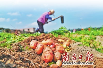 阳春三月,广东省农业科学院作物研究所(以下简称“作物所”)位于广州市白云区的马铃薯育种基地迎来今年又一批选种马铃薯丰收。一大早,罗焕明就和刘计涛博士带着一群学生,组织附近村民一起挖出马铃薯,再一株一株选、一颗一颗挑,“选种就像选美一样,颜值高、表现好的才能留下。”罗焕明说。