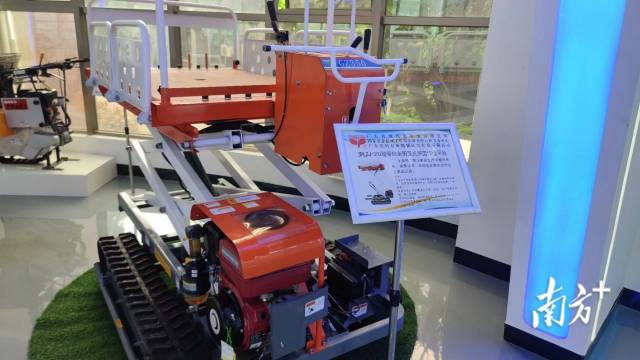 广东省现代农业装备研究所的实践基地内,通过农机、图文、多媒体、互动项目等多种多媒体形式以及农业元素装饰,还原现代农业装备以及相关场景。学员们围在一起,讨论着现代化农业装备。