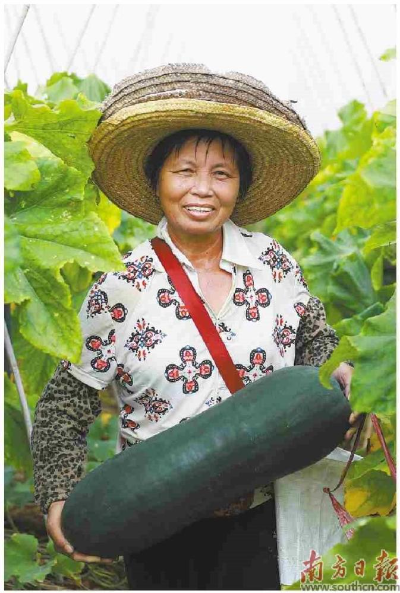 九月的东莞秋意渐浓,道滘镇的秋造黑皮冬瓜长势旺盛,陆续进入膨瓜期,瓜农也迎来秋管的关键时期。走进道滘蔡白黑皮冬瓜种植基地,连片的冬瓜架上均已攀附上粗壮的瓜蔓,一个个翠绿的冬瓜挂在瓜蔓上,沐浴雨水后更鲜娇嫩。瓜农趁着阴天,忙着采收部分成熟的大冬瓜。