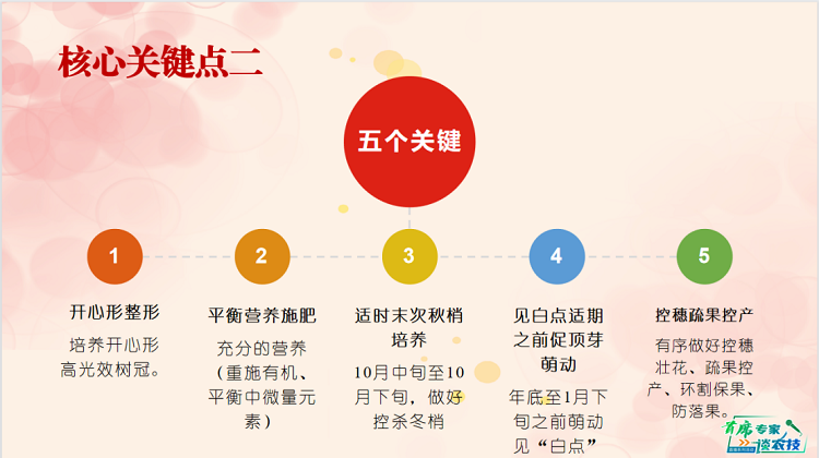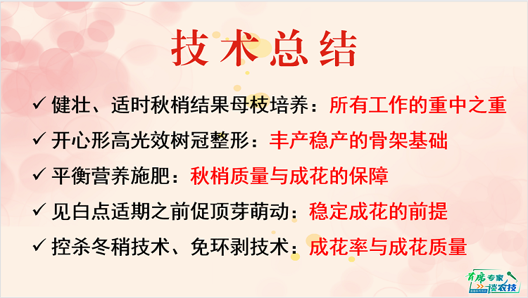 向旭首席强调并推荐荔枝的“高光效树冠管理”,是“克服大小年”产业技术的主要路,展示了矮化开心形荔枝树冠结果状。最后以技术总结,为本次直播画上完美句号。