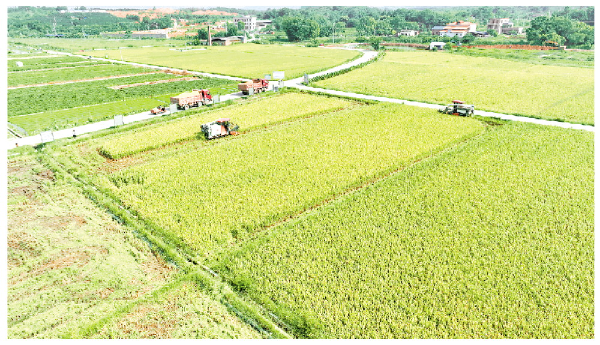 高标准农田更适宜机械化耕种。始兴县广源农场总经理张一回忆,2011年,他们在七北村、围下村流转土地种植水稻、蔬菜等作物,起初下田只能走田埂,打药、施肥、收割时只能依靠人工肩挑背扛,很不方便。“他们用小型收割机收割后,工人在田间装袋后再转运到货车上,每年农忙时至少需要请60个散工,一天工资要100元至150元。”
