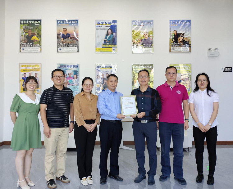 扎金花app 科教处陈和清二级调研员专程到直播现场指导工作,并为《首席专家谈农技》直播系列活动专家团队颁发“优秀团队”荣誉证书。