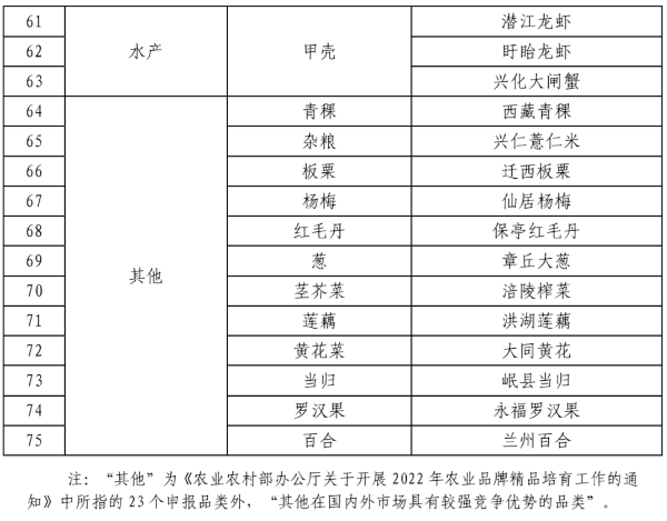 根据《农业农村部办公厅关于发布2022年农业品牌精品培育名单的通知》(以下简称《通知》),经省级推荐、形式审查、专家推选、网上公示等程序,将五常大米等75个品牌纳入2022年农业品牌精品培育计划。