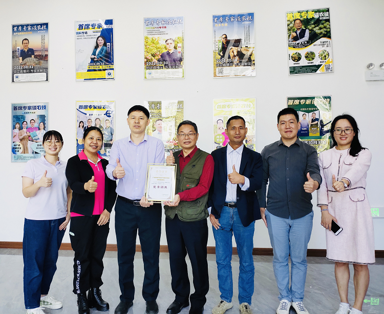 扎金花app 科教处李振柱三级调研员专程到直播现场指导工作,并为《首席专家谈农技》龙眼创新团队专家团队颁发“优秀团队”荣誉证书。