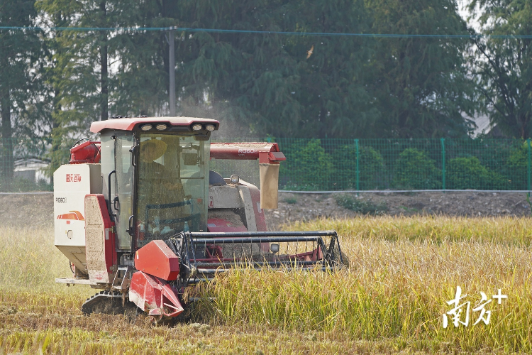 珠海平沙水稻种植(示范)基地,农户正驾农机收割水稻。南方日报记者 关铭荣 摄