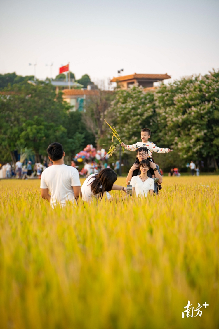 佛山南海里水镇鲁岗村,金灿灿的稻穗已经成熟,农民朋友加紧收割,享受这丰收的喜悦。南方日报记者 戴嘉信 摄