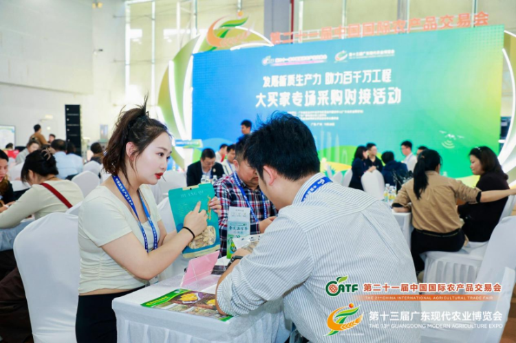 11月28日,第二十一届中国国际农产品交易会(以下简称“农交会”)在广州中国进出口商品交易会展馆开幕。第十三届广东现代农业博览会(以下简称“农博会”)同期在农交会广东馆(B 区9.2馆)举行。开幕当日下午,“发展新质生产力 助力‘百千万工程’”大买家专场采购对接活动(以下简称“对接活动”)在现场举行,全球采购商齐聚羊城广州,抛出采购需求的“绣球”;本土供应商们带着需求清单,向全球伙伴“安利”拳头产品。