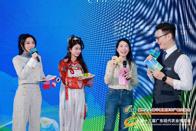 广东地处五岭之南,气候温暖,雨量充沛,物产丰饶,孕育出众多岭南佳果。在美食沙龙现场还出现徐闻菠萝和德庆贡柑同台“比武”,争当广东水果圈“顶流”的热闹场面,惹得台下掌声不断。