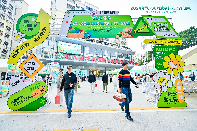活动现场气氛热烈。来自广东全省21个地市以及贵州、云南、西藏、吉林、黑龙江等地区的28家消费帮扶馆、千余款农特产品汇聚一堂,贵州腊味、广西六堡茶、云南普洱、韶关长坝沙田柚、化州橘红、河源紫金蝉茶、阳江金鲳鱼……各大区域品牌产品吸引了羊城市民前来品尝、选购,充分展现“人人皆可为、人人皆愿为、人人皆能为”的消费帮扶浓厚氛围。