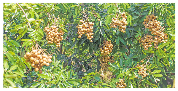 黄澄澄的龙眼挂枝头,静待客商采购。