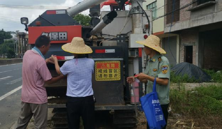 “收割机这个传动带安全防护罩一定要及时安装回去。灭火器那些要经常检查、维护,并随机携带。作业时,千万要提醒无关的人员离开作业区域。天气炎热,多喝水,注意身体安全防中暑.......”21日,在源城区埔前镇收割田间,农机工作人员正在向联合收割机机手宣传农机安全生产知识,提高机主机手安全、规范操作农机意识。