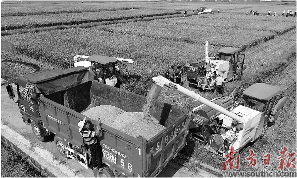 在广州市和稻丰农业科技发展有限公司的基地厂房内,米香扑鼻、凉气袭人、齿轮飞转。“历经检测、接收、烘干、加工、仓储、包装等环节,稻谷全程不沾地。”该公司有关负责人冯永新介绍,“得益于无人智能化控制,我们基地的加工产能达每天360吨。”