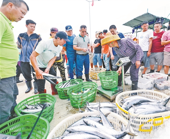赶早市“抢头鲜” 开渔后阳江市闸坡港码头首批渔船满载而归