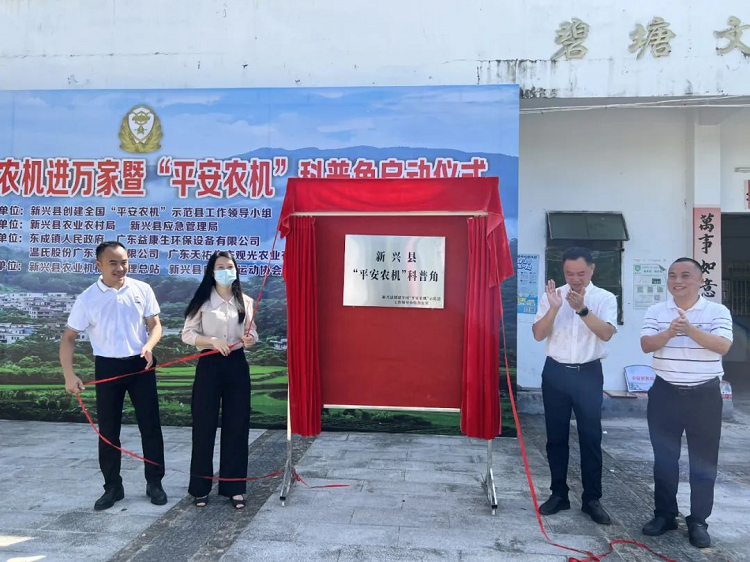 仪式上,邓玲玲、陈冠鸿和相关领导共同为“新兴县平安农机科普角”揭牌。