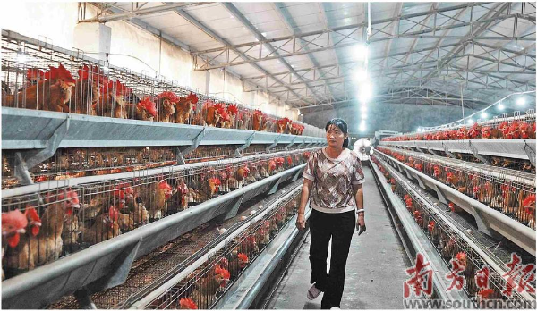 博罗石坝乌坭湖村民规模化养殖三黄胡须鸡,年出栏量达千万只。