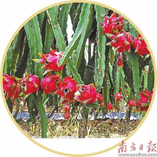 火龙果已成熟,枝条上沉甸甸。谭荣宇 摄
