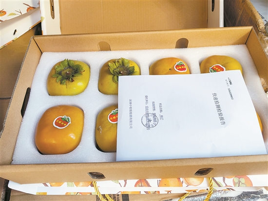 黄先生说,北梭甜柿已经形成品牌,统一包装,通过电商等平台,销售到各地。每只超过500克的大果,在深圳一般都会卖到20-30元一斤,在国外,可以卖到近50元一斤。