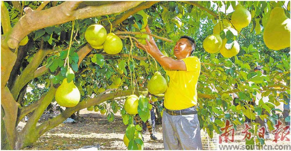 在雁洋镇南福金柚公园,柚农们在柚园里摘柚子、挑柚子,脸上洋溢着丰收的喜悦,一派丰收采摘的忙碌景象。柚农陈文均告诉笔者,他一共种植了30亩金柚,按照分级销售的方法,品质好的一斤能卖到5元以上。