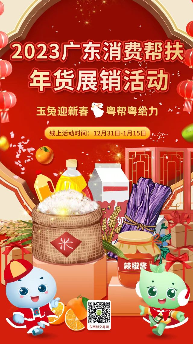 2022年12月31日-2023年1月15日,“玉兔迎新春粤帮粤给力”2023广东消费帮扶年货线上展销活动(下称“年货节”)于广东东西部扶贫协作产品交易网火热开展,年货爆品优惠多多,有美味更有年味!