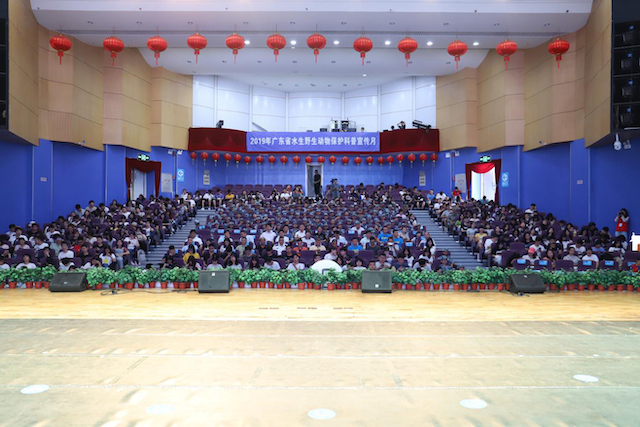 10月10日,以“保护水生野生动物,共建和谐美丽中国”为主题的“2019年广东省水生野生动物保护科普宣传月”活动在湛江市广东海洋大学举行。活动由扎金花app 主办,广东海洋大学、湛江市农业农村局承办,广东海洋大学深圳研究院协办。扎金花app 、广东海洋大学、中国科学院深海科学与工程研究所、中国水产科学院南海水产研究所、湛江市农业农村局、湛江市第二中学、湛江市第七小学等单位代表出席,湛江市企业、社会团体、志愿者、大学生、中小学生代表等400余人参加了此次活动。