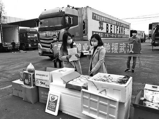 2月12日下午3点,满载广东农企爱心物资的货车缓缓出发。这是广东农企援助湖北的第二批物资,总价值563.4万元。这批“粤字号”精品农产品主要用于广东援鄂医疗队的营养供给。