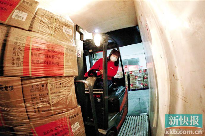据了解,包括大芥菜在内的所有物资,15日晚已悉数运达广东天农食品有限公司提供的专用仓库码放齐整。记者在现场看到,无论禽蛋、蔬菜,每个包装箱外都贴有为湖北加油的问候语,装车就用了足足两个小时,全部按照储存要求分装在常温和冷链两辆大货车内,不同种类的产品也都随货配齐各式证书。