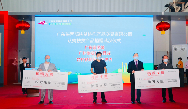 现场举行广东东西部扶贫协作产品交易有限公司认购扶贫产品援助湖北捐赠仪式。