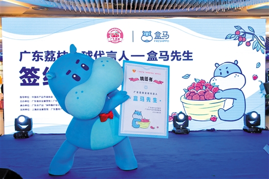 不仅如此,广东荔枝还拉上盒马先生“出道”,官宣盒马先生成为广东荔枝的全球代言人,“代言费”也是史无前例的大方,一出手就是1000吨荔枝。