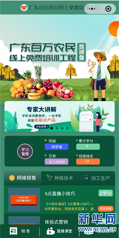 一亩田“广东百万农民线上免费培训工程”微信小程序页面。新华网发