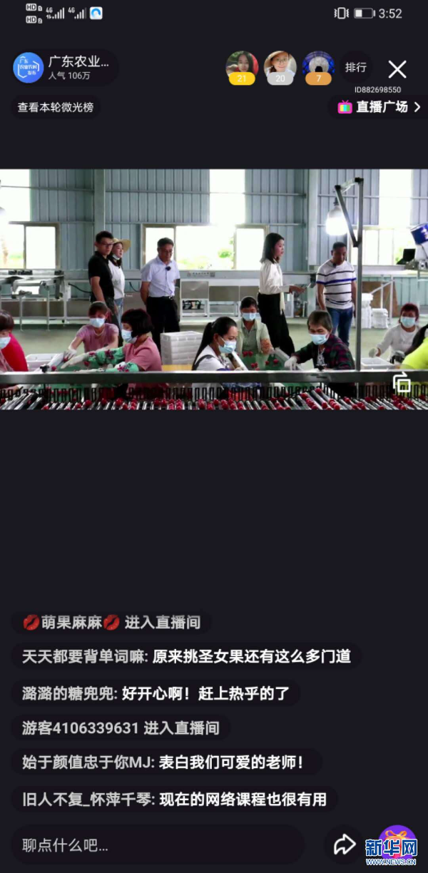 10月11日,“广东百万农民线上免费培训工程”(简称“百万工程”)第一课在湛江市遂溪县界炮镇圣女果基地开课,并同步在广东农产品“保供稳价安心”数字平台、腾讯微视直播间直播。两个小时的在线课程转瞬即逝,因为课程内容丰富、老师授课风趣,原本面向广大农民的培训课程,吸引了大批90后围观,仅腾讯微视直播间,开播后半小时就涌入了106万人次围观,当天两个小时的直播,共吸引了超过345万人次观看。