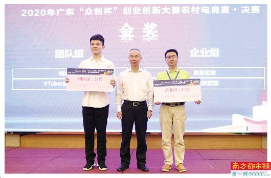 10月14日,2020年广东“众创杯”创业创新大赛之农村电商赛金奖获得者上台领奖。 南都记者 何玉帅 摄