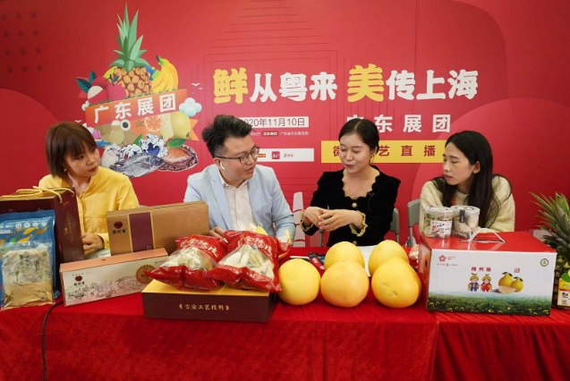鲜从粤来,美传上海。11月10日,2020第十三届iFresh亚洲果蔬产业博览会(简称“亚果会”)在上海新国际博览中心开幕,拉开了一场全国各地优质果蔬产品的展览盛会,广东农产品展团汇聚了14个地市共44家企业,为上海市民带来了梅州柚、贡柑、菠萝、茶叶、水产品等优质上百款产品,除了展销品鉴,现场的综艺直播推介更让上海滩“粤味”十足。